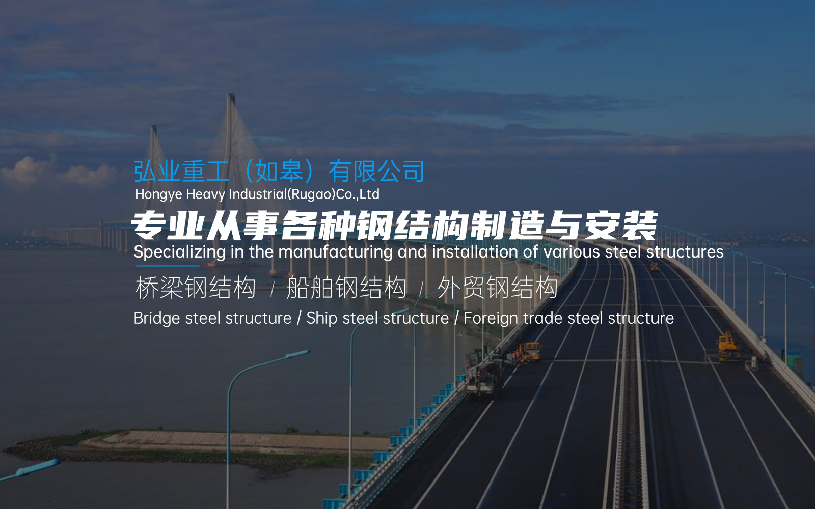 南通弘業(yè)重工有限公司是一家以橋梁鋼結(jié)構(gòu)、船舶鋼結(jié)構(gòu)、外貿(mào)鋼結(jié)構(gòu)制作為主的有限責(zé)任公司。公司坐落在風(fēng)景秀麗、人文薈萃、物產(chǎn)豐富的江海之濱一中國近代第一城江蘇南通市。公司由董事長嚴(yán)祥于2015年3月創(chuàng)建,注冊資本3180萬元整。生產(chǎn)基地位于如皋市如皋港熔盛重工廠區(qū)內(nèi),現(xiàn)年總生產(chǎn)量達(dá)15萬噸。在激烈的市場競爭中“以誠信待人、以質(zhì)量取勝、以信譽(yù)為本”為企業(yè)宗旨,基于此前的良好市場口碑、豐富的鋼結(jié)構(gòu)制造經(jīng)驗和專業(yè)技術(shù),從事各種鋼結(jié)構(gòu)制造與安裝,并以優(yōu)秀品質(zhì)成功交付多項產(chǎn)品,在重工行業(yè)得到了客戶的廣泛認(rèn)可,獲得了較高的市場信譽(yù)。Nantong Hongye Heavy Industry Co., Ltd. is a limited liability company mainly engaged in the manufacture of bridge steel structures,ship steel structures and foreign trade steel structure production. The company is located in Nantong City,Jiangsu Province, the first city in modern China with beautiful scenery, cultural gatherings and rich products. The company was founded by Chairman Yan Xiang in March 2015 with a registered capital of 8.31million yuan.The production base is located in the Rongsheng Heavy Factory in Rugao Port,Rugao City.The total annual production capacity is about 150,000 tons.In the fierce market competition, ?treat people with integrity, win with quality, and take credit asthe foundation? isthe corporate tenet. Based on the previous good market reputation,rich experience and professional technology in steel structure manufacturing, we are engaged in the manufacture and installation of various steel structures,and have successfully delivered a number of products with excellent quality, which have been widely recognized by customers in the heavy industry industrial field and won a high market reputation…